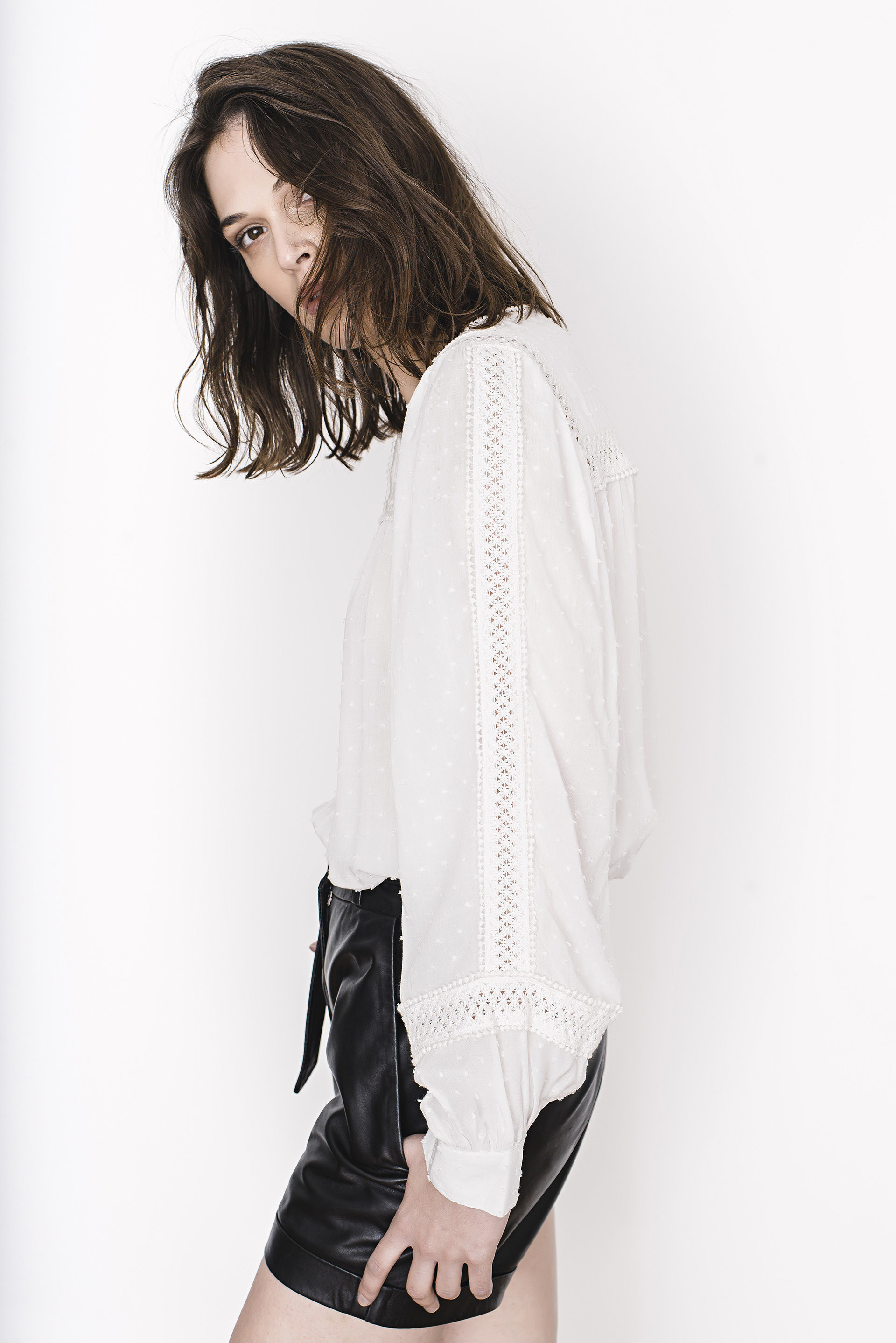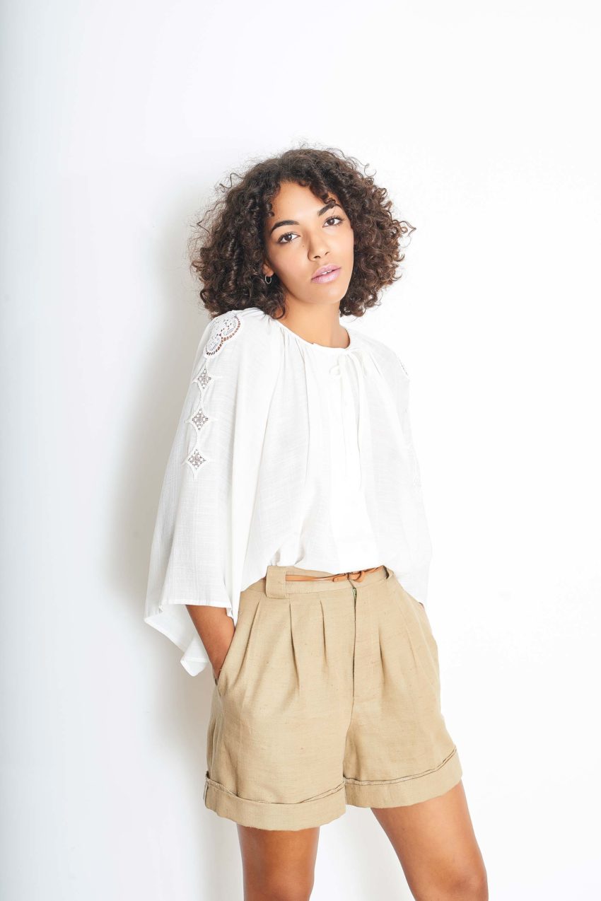 Cirine blouse – 100% cotton – Cotton dot dobby with cotton lace