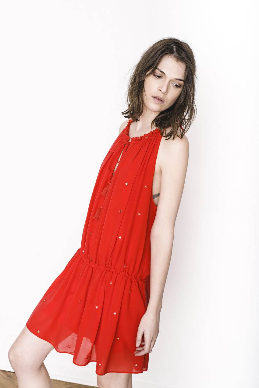 Coquelicot blouse – 100% cotton – Cold pigment dyed on cotton double gauze with embroidery