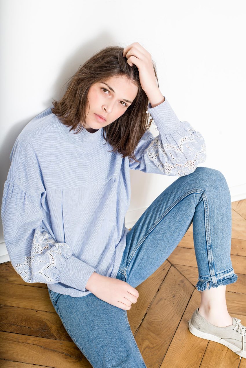 Hope top – 60% cotton 40% tencel – Denim aspect with embroidery and lace